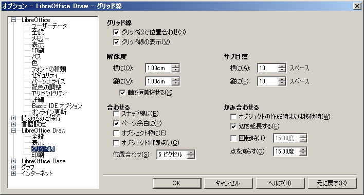 Drawを起動したら最初にすべきことは、グリッド線の設定でしょう。