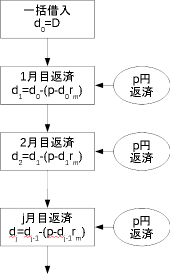 下の元利均等返済での元金計算フローを見てみましょう。