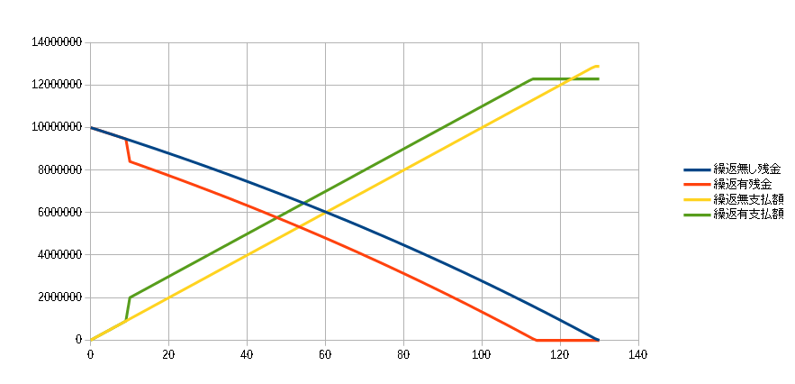 今度は、繰り上げ返済したらどうなるのか計算してみましょう。