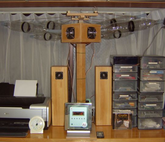 放熱板が横を向いているのはいかにも素人臭くてご愛嬌だが、過熱することもなかったので、そのままにしている。一般的には(電熱学的には)縦にしたほう