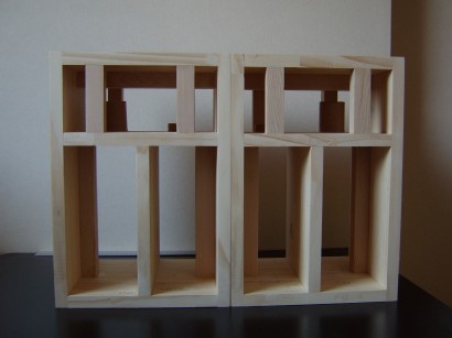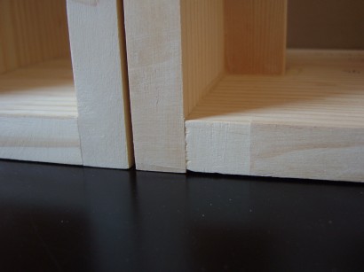 左の写真のように、形は殆ど完成したように見える。しかし、パイン集成材というのは曲者で、製作中に寸法が変ってしまう。
