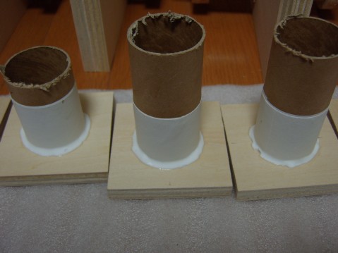 最初はダクトを、板で四角く作っていたが、ダクト用の材料を考慮すると板取に無駄が出るし、作るのも面倒なので、やはり、厚手の紙管がベストと思う。