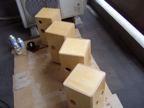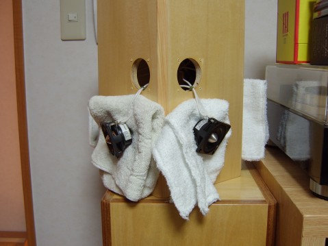 スピーカーシステムの表面に水性ニスを使うと、他のものにくっ付いたりして困るが、内部の塗装であれば全く問題ない。