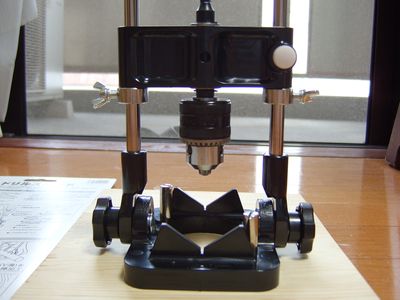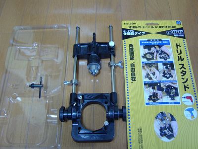 ドリルスタンドは高価で、9,000円弱するが、丸棒にも孔を開けることができる立派なものである。早く買っておけば良かったものだが、当分使用する予定