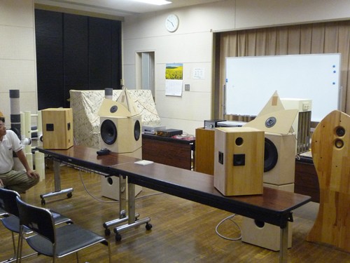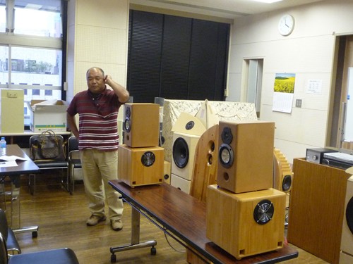 音出しの最初を飾ったのがこの作品で、会場でも好評でした。 詳細は、こちらをご参照ください。 本人のコメント 当日は、もう楽しかったの一言です。自分のスピーカーがこれだけ多くの人の前で鳴らせて感激です。スピーカーは最終的には長岡さんも言っておられる通り 「職人」の世界です。低域についても、それが音楽の中でどう鳴るかが重要だと思っています。聴かれた方の感性と私の感性が融合するのかしないのか、、、、 私の中では最善の努力で鳴らしましたし、あとは聴かれる方それぞれの胸の内でしょう。聴いて頂いた皆様に感謝致します。 |