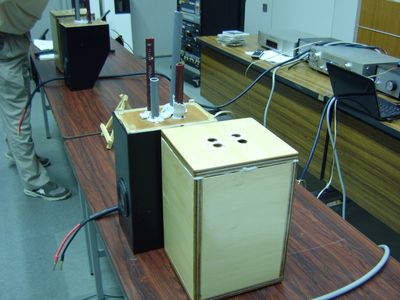金子さんコメント: 今井様、このたびはスピーカーの特性を測定していただきありがとうございました。密閉型なので電気的なロー ブーストに耐えると思って手を上げました。周波数特性の平坦化の実験とあわせ、とても興味深かったです。30Hzから50Hzの間に連続的なインピーダン スの山が確認でき、ヘルムホルツ共鳴器の効果が電気的にも確認できました。また、周波数特性の測定で400Hzより下で音圧低下傾向がみられたということ でした。ヘルムホルツ共鳴器の吸音効果は共鳴周波数の近くで大きいといわれています。今回のように共鳴周波数を30Hzから50Hzの間に設定した場合で も、吸音効果が少なくとも400Hzくらいまで及ぶことが示唆されました。(これは予想よりも高かった。) 吸音材による吸音効果は中高音が主体であるこ とを考えると、ヘルムホルツ共鳴器による吸音は低音にも有効なので良い方法だと思います。その威力は鈴木さんがコメントされているとおりですが、密閉型特 有の音の濁りや音の詰まった感じが従来より大幅に減ったと思います。テンポが速く音源が多い曲や電子音主体の曲で切れ味が要求されるものには、従来型より も音の混濁が少なくかなり聞きやすくなりました。 共鳴器による低音の増強については、「パイプの径をもっと太くして共鳴の効率を上げれば良いのでは」というご指摘をいただきました。たしかに内径約14?では細い感があります。共鳴器の容積を増やして管径を太くすることは十分可能なので検討してゆきたいと思います。 低音の歪みが中高音に大きく影響することは今回あらためて感じたことです。サブウーファーもしくはツィーターを追加して2ウェイ化することはさらなる音 質向上のための一つの方向性でしょう。一方で、小口径フルレンジ一発の密閉型での、すべての音域が単一の振動板から放射される音というのも、定位や位相を 重視したい音源をニアフィールドで聞く場合には捨てがたい魅力があります。ふだん自宅の8畳間で普通の音量で聞いている分にはちょうど良い感じだったので すが、今回の会場は広くて、大音量で聞くにはさすがに8?口径のユニット一発では非力でした。 |